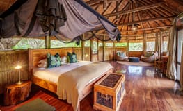 Bilimungwe Bushcamp is located in the remote southern part of the South Luangwa National Park. Each of the four large en suite reed-and-thatch chalets are built on raised decks and overlook one of three permanent waterholes. The main area consists of a large lounge, built around a termite mound and overlooks a waterhole. Activities include walking safaris, day and night game drives and spending time in one of the wildlife hides.