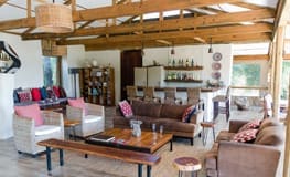 Entirely built out of sandbags from the red Kalahari sands that dominate the northern part of Botswana, this eco-friendly lodge presents an original design reminiscent of traditional African farmsteads and can accommodate up to 36 guests in eleven chalets. All rooms are en-suite with both indoor and outdoor showers and have private verandas to fully enjoy the views and surroundings. The lodge also boasts a large open-plan main area featuring a cosy arrangement of couches, bar, dining area and reading corner, along with a swimming pool with viewing deck onto a private water hole.