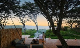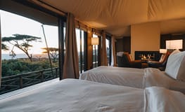 Nestled within a grove of acacias, Craters Edge Camp is located on the north-eastern side of the Ngorongoro Crater. The camp offers fifteen stand-alone suites perched on stilts with private wooden verandah’s giving unparalleled views across the crater. Each suite is equipped with a scope and offers a spacious lounge area, perfect for relaxing with a book, or a pair of binoculars to watch wildlife from your tent. The main area consists of a lower and upper floor, with communal lounge, bar, viewing deck and dining area. Enjoy relaxing by the fireplace with an after-dinner cocktail.