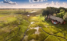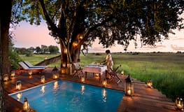 Duba Plains is perhaps the Okavango Delta's most remote camp. Located on a private 77,000-acre concession area, the camp is just north of the Moremi Reserve. Built on an island, surrounded by expansive seasonally flooded plains, this area is home to a variety of game. The area is particularly famous for its lion prides.
