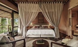 Gorilla Forest Lodge is a luxury permanent tented camp located within Bwindi National Park. As the only luxury property within the park, it is the ideal base for your gorilla trekking adventure. Each of the eight spacious tents features a huge bathtub that looks into the jungle canopy and is the ideal place to relax after a day of trekking. Enjoy a cocktail on your private verandah while watching the prolific bird life. The main lounge area includes a separate bar and dining cottage that overlooks the lush rain forest. Dinner is a four or five course celebration highlighting fresh ingredients and local favorites. There is a small spa that offers a variety of treatments to choose from such as herbal massage, facial and foot massage.