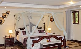 Ingagi Park view Lodge is located on the periphery of Volcanoes National Park. It has a panoramic view of the five peaks of the Virunga Volcanoes. The lodge houses eight spacious chalets. Guests can enjoy a continental breakfast and stay connected using complimentary Wi-Fi. The lodge features a terrace overlooking the pristine natural garden as well as a fireplace and bar. While staying at the lodge, guests can enjoy a variety of activities which include gorilla or golden monkey trekking, volcano hiking and canoe trips.