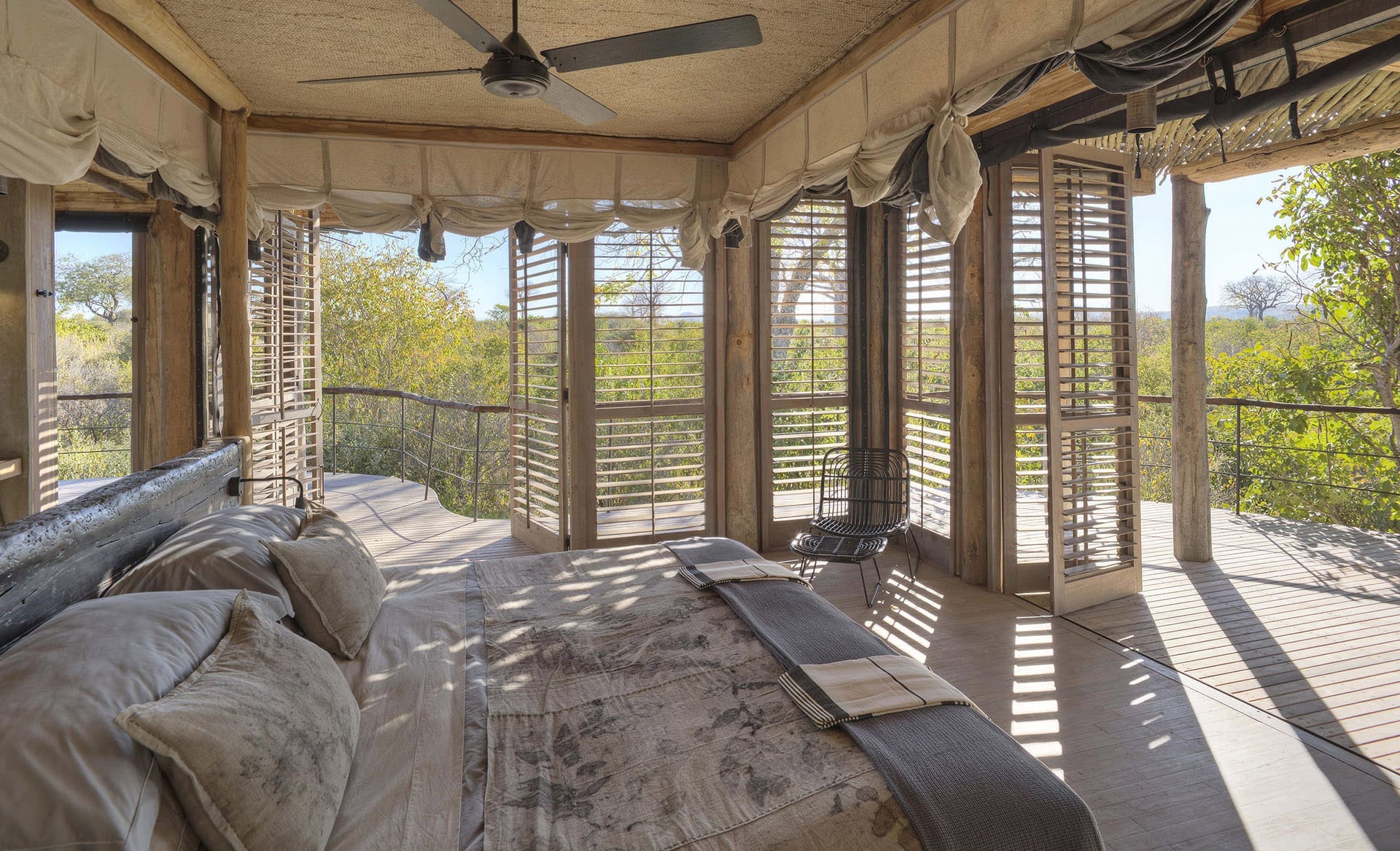 A deluxe lodge or tented camp, almost all with swimming pools, excellent food and service, large nicely appointed rooms or tents with comfortable beds and tasteful decor; most of the lodges have air-conditioning and the tents are usually fan-cooled.