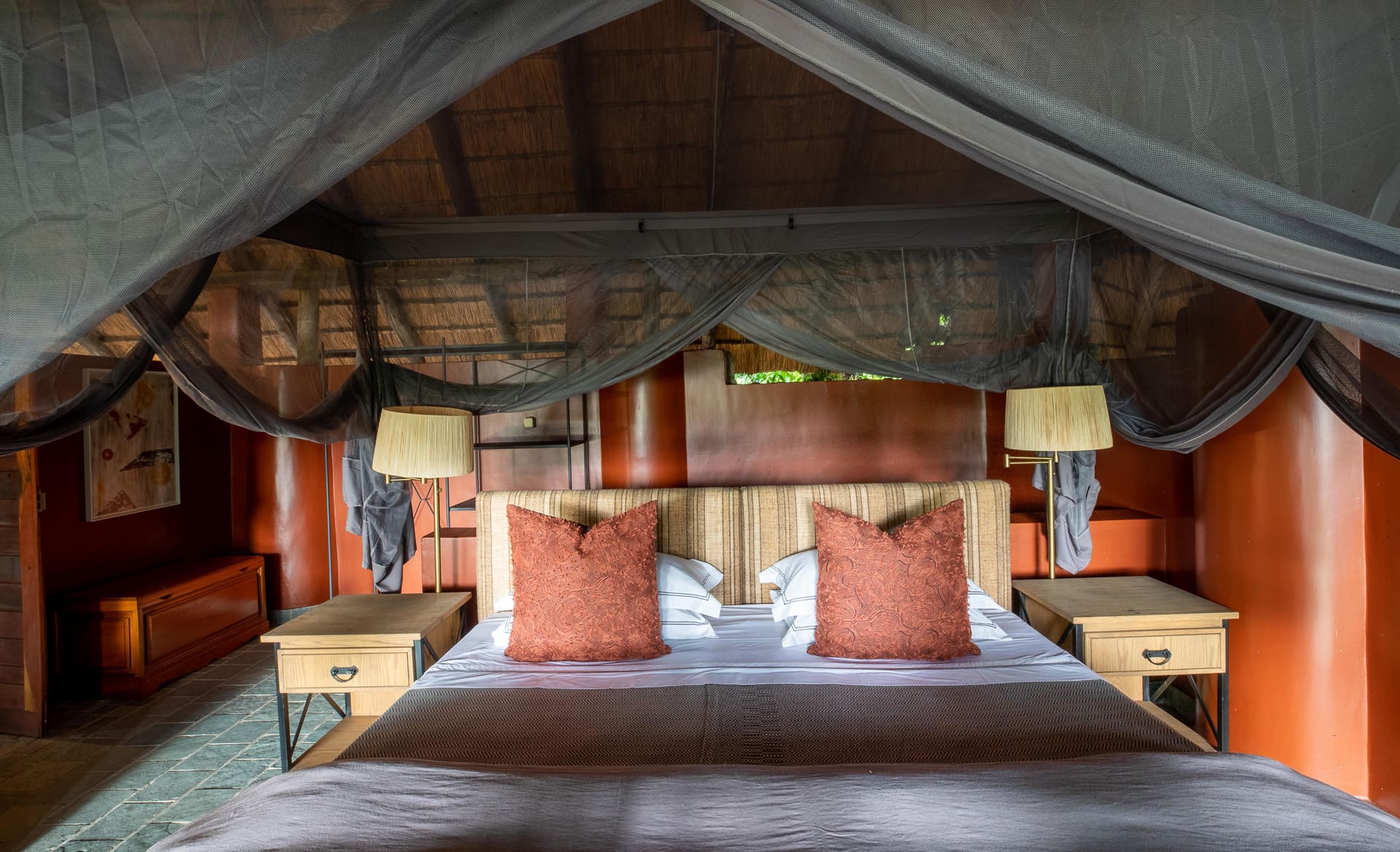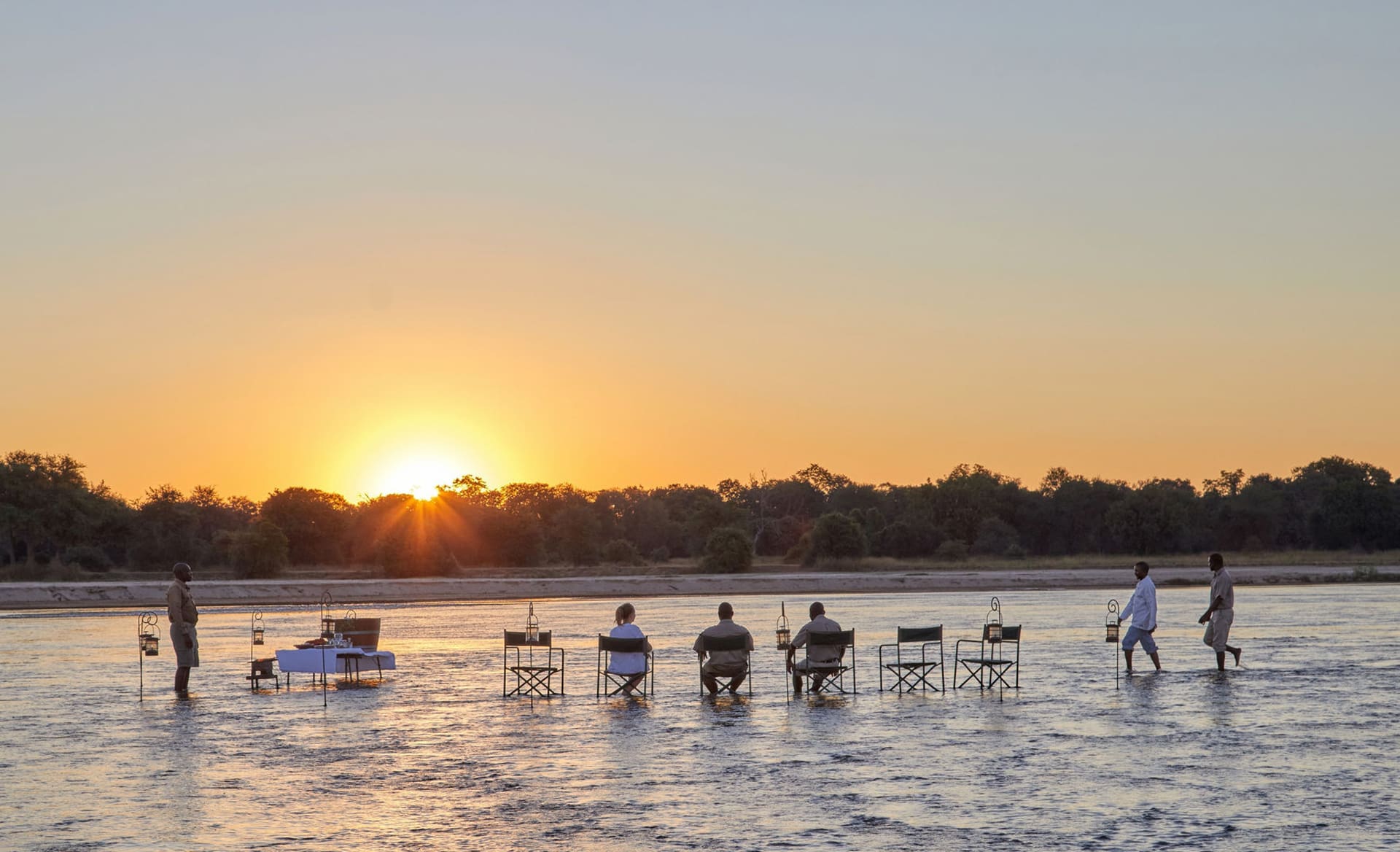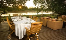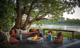 The large main lounge and dining area extends to a tiered deck and includes a bar and firepit, as well as swimming pool, all with a view over the Kapamba River, making it a perfect place to relax.