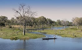 Khwai Bush Camp is located on the banks of the Khwai River bordering the Okavango Delta's Moremi Game Reserve. The camp features four standard tents and two family chalets, each with en suite bathroom, indoor shower and flush toilet. Enjoy relaxing on the viewing deck which overlooks the river. Activities are varied and game drives, walking safaris, bird watching, night game drives, cultural tours of local villages and mokoro rides (water levels permitting).