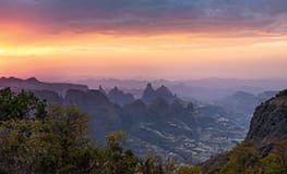 Limalimo Lodge is perched on the edge of the escarpment in the Simien Mountains. This boutique lodge features 12 rooms with en suite bathrooms and stunning views over the hillside. Built with “green technology” the lodge is constructed using rammed earth, locally sourced wood and thatch. The main lounge, restaurant and bar area have floor to ceiling windows which open out to an expansive terrace. In the evening enjoy sitting by the log fire.