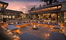Lion Sands River Lodge is located on the banks of the Sabi River in a lush forested area. Accommodations include 18 thatched air-conditioned bedrooms with en suite bathrooms, indoor and outdoor shower, private viewing deck and min-bar. The rooms are linked to the main public area by raised wooden walkways. The lodge offers guests a relaxing lounge and bar overlooking the river, two swimming pools (heated in the winter) with extensive decking, a secluded bird hide, Lalamuka Health Spa and gym, curio shop and open-air boma.