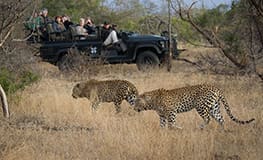 Londolozi is renowned for its world-class rangers and Shangaan trackers, regarded as among the best in Africa, along with its progressive ecotourism practices. Activities offered are morning and afternoon/evening game-drives in open 4x4 safari vehicles. Explore the Sabi Sand Game Reserve on interpretive wilderness walks and learn more about the area’s intriguing fauna and flora. Guided bush walks bring you face-to-face with wild Africa at its best. The Sabi Sand Game Reserve and Kruger National Park are of the finest Big Five game (lion, leopard, elephant, buffalo and rhino) destinations in Africa and you stand an excellent chance of spotting the elusive leopard.In addition to game viewing activities you can take a guided walk through the staff village, visiting the school and community crafts center. You may also visit a small Shangaan village within the staff village and observe traditional local dwellings and meet the sangoma (witch doctor). Londolozi’s ongoing community projects may also be observed in the neighboring communities of Huntington and Lilydale. A sleep-out is available during the winter months. Built in the branches of a 1000 year old Ebony tree, the raised deck features comfortable bedding and mosquito netting. Waking up at dawn under the trees is the ultimate safari experience. (Must be booked in advance).