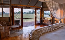 Located in the south-western corner of the Okavango Delta, within the Xudum concession, Mokolwane is the only camp in a virtually untouched 200 000-hectare private setting. The camp features seven canvas style tents built 10 feet above the ground each with en suite facilities including indoor showers, flush toilets and hot and cold running water. The communal dining area is also on a raised platform where you can relax and enjoy your meals with spectacular views, and at night, sit back and take in some exceptional star gazing.