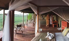 Musekese Camp is located on the banks of the Kafue River in the Kafue National Park and features five spacious en suite tents, each with their own deck overlooking the Musekese dambo. The main area comprises of a dining and lounge area. Activities include game drives, boat cruises and walking safaris whilst in June, and dependent on water levels seasonally, there is also the chance to canoe. Birding is exceptional throughout the Kafue and guests can also visit the Treehouse Hide, an elevated hide near camp which overlooks the Northern portion of the Eden Lagoon.