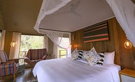 Set along the curve of the Mussicadzi River in Gorongosa National Park, Muzimu Lodge comprises of six raised tented suites, each with en suite bathroom with shower and a private deck with views of the surrounding area. The main area consists of a large open lounge and indoor and outdoor dining area, central campfire, shaded deck with river views and a swimming pool.