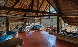 Mwagusi Safari Camp is located in scenic Ruaha National Park. It offers 10 "bandas" with spacious interiors, sheltered by a cooling thatch roof and set on a polished red floor. Each banda has en-suite facilities with flushing toilet, an unlimited supply of hot water, shower, sink, shelving, a large mirror and good night-time lighting. Built using stones, driftwood and bones the bathroom is an area of interesting, unique and original design. Meals are eaten together with managers and other guests in any of our two main dining areas in a friendly and relaxed atmosphere. Private dining can be arranged on request. The main dining area is built looking onto the riverbed and has two large and comfortable seating areas where you can relax with an afternoon drink.