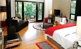 Nyungwe House is luxury property on a tea plantation located on the edge of Nyungwe Forest National Park. The lodge features 22 luxury rooms and 6 wooden villas each with private decks, air-conditioning, fireplace, decadent en suite facilities with a shower and flat screen TV. Enjoy dining at the restaurant with its private terrace, the bistro by the outdoor heated pool or the boma for a traditional meal. There is a tea lounge and bar, spa facility with two treatment rooms and Jacuzzi as well as a small fitness center.