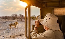 Onguma Tree Top Camp is located on the Onguma Game Reserve, bordering on the eastern side of Etosha National Park. It is a small and intimate camp, features four thatched wooden chalets built on wooden stilts amongst the tree tops. Each room has an en suite bathroom with indoor-outdoor shower, and a private deck where you can relax and enjoy the floodlit waterhole. The main lodge offers a bar, fireplace, expansive deck, boma and open-plan dining room.