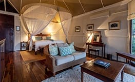 The River Club is located on the banks of the Zambezi River, upstream from Victoria Falls. It is set among the lush riverine vegetation and the camp has a distinct Edwardian flavor. 11 luxury thatched suites feature screened porches, uninterrupted views across the river, in-room safe, hair dryer, mini-fridge, wi-fi, electric charging outlets and en suite bathroom with flush toilet and large shower. Some of the suites also have their own private plunge pool. The main building, known as the ‘Zambezi House’ includes the lounge, fireplace, dining room and library. Covered verandahs provide the focal point - a comfortable area to enjoy afternoon tea or relax with a book. The swimming pool has a spectacular view across the river.