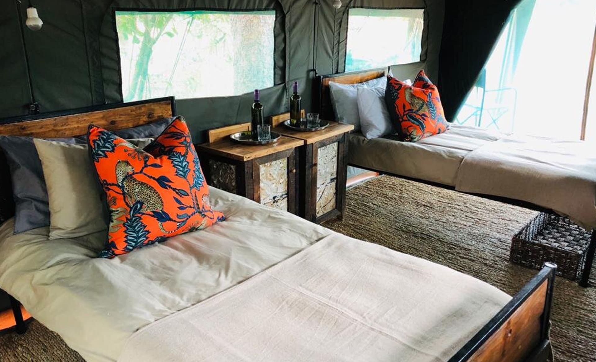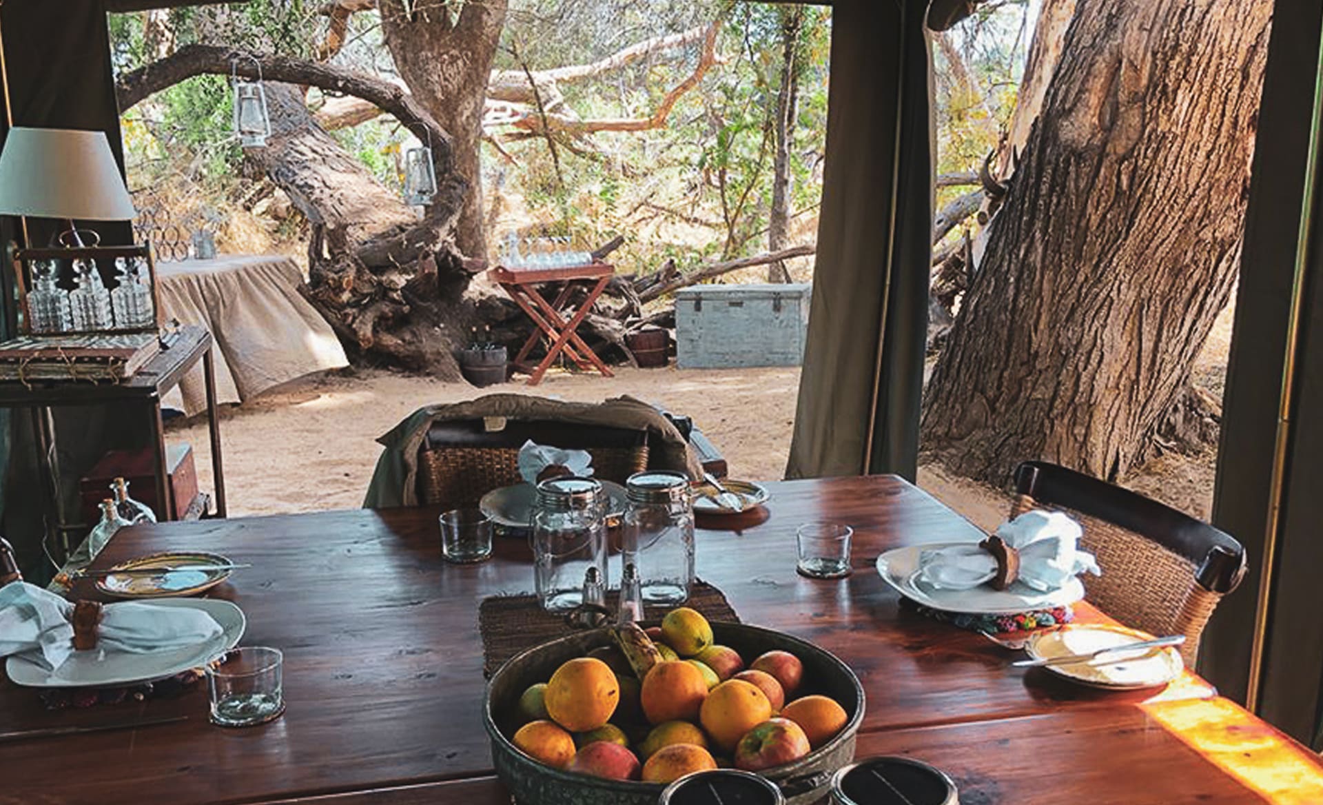 Comfortable beds and linens, great food and select wines, flush toilets and unique bathroom set-up with the traditional “bucket shower” on order! Decor and style that reflects the safaris of a bygone era, ambience and lighting, stimulating conversation and caring staff that have worked for us for many years and are part of the family.