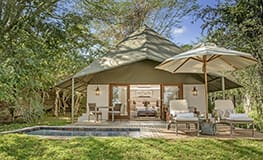 Savanna Lodge is located in the Sabi Sand Reserve. It offers Big Five game viewing, personalized service and comfortable accommodations. The lodge features nine beautifully appointed air-conditioned suites. En suite bathrooms have Victorian bathtubs, double vanities and both indoor and outdoor showers. The suites are built surrounded by lush vegetation, ensuring your privacy. The main lodge has shaded decking with the dining room, lounge and bar area. Relax between game drives at the swimming pool which overlooks the floodlit waterhole.