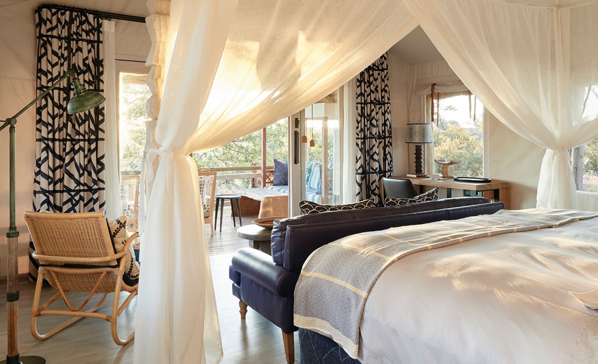 Located five miles north-west of the north gate of the Moremi Wildlife Reserve, Sediba Sa Rona (formerly Khwai River Lodge) is set under a canopy of old indigenous leadwood and fig trees and offers a commanding view of the Khwai River flood plain. The camp consists of 15 luxury tents, two of which are inter-connected, as a luxury family tent, built on raised decks and shaded by a traditional African thatch roof. All tents are en suite and have private outdoor decks offering stunning views over the Khwai River.