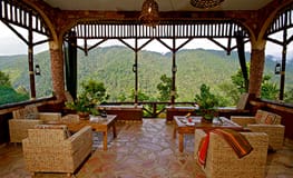 Silverback Lodge is a five minute walk to Bwindi Impenetrable Forest and offers sweeping views of the valley. Accommodations include 12 rooms each decorated with local materials such as sisal rope and purple slate stone, en suite bathroom and a veranda to sit and enjoy the view. After a day of gorilla trekking, enjoy a cocktail in the Summit Bar followed by dinner in the restaurant.