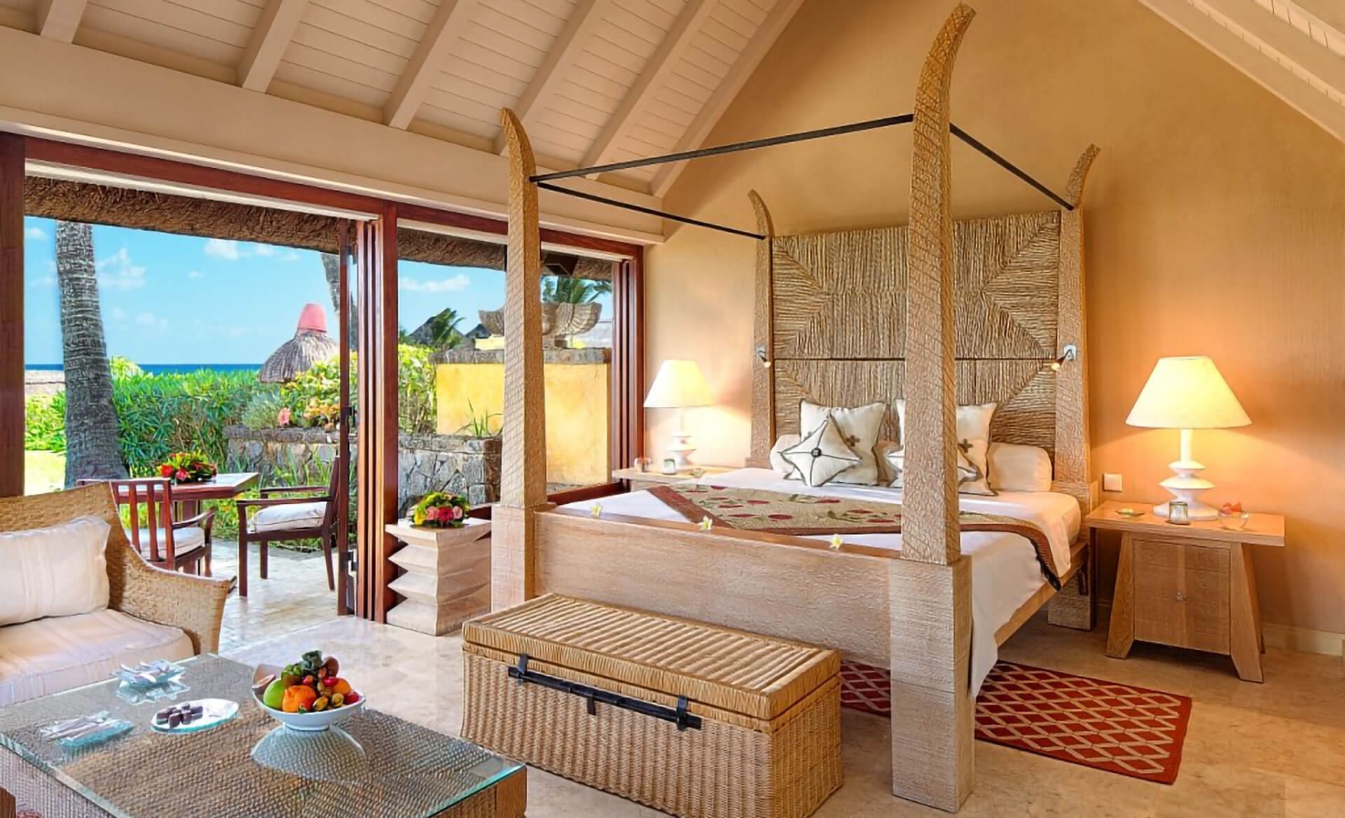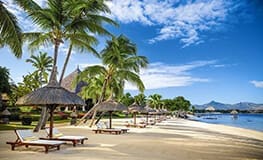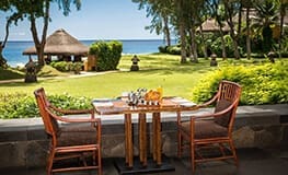 The Oberoi Resort Mauritius lies on the shore of the Baie aux Tortues on the northwest coast of Mauritius. It has an impressive ocean front of golden sands that melt into the turquoise sea. There are 72 luxurious Villas and Terrace Pavilions within 20 acres of sub-tropical gardens. Every room features a romantic four-poster bed and a sunken bathtub which looks out onto a private, walled garden. The resort offers a full service spa, two gourmet restaurants with panoramic views of the Indian Ocean and an infinity pool.