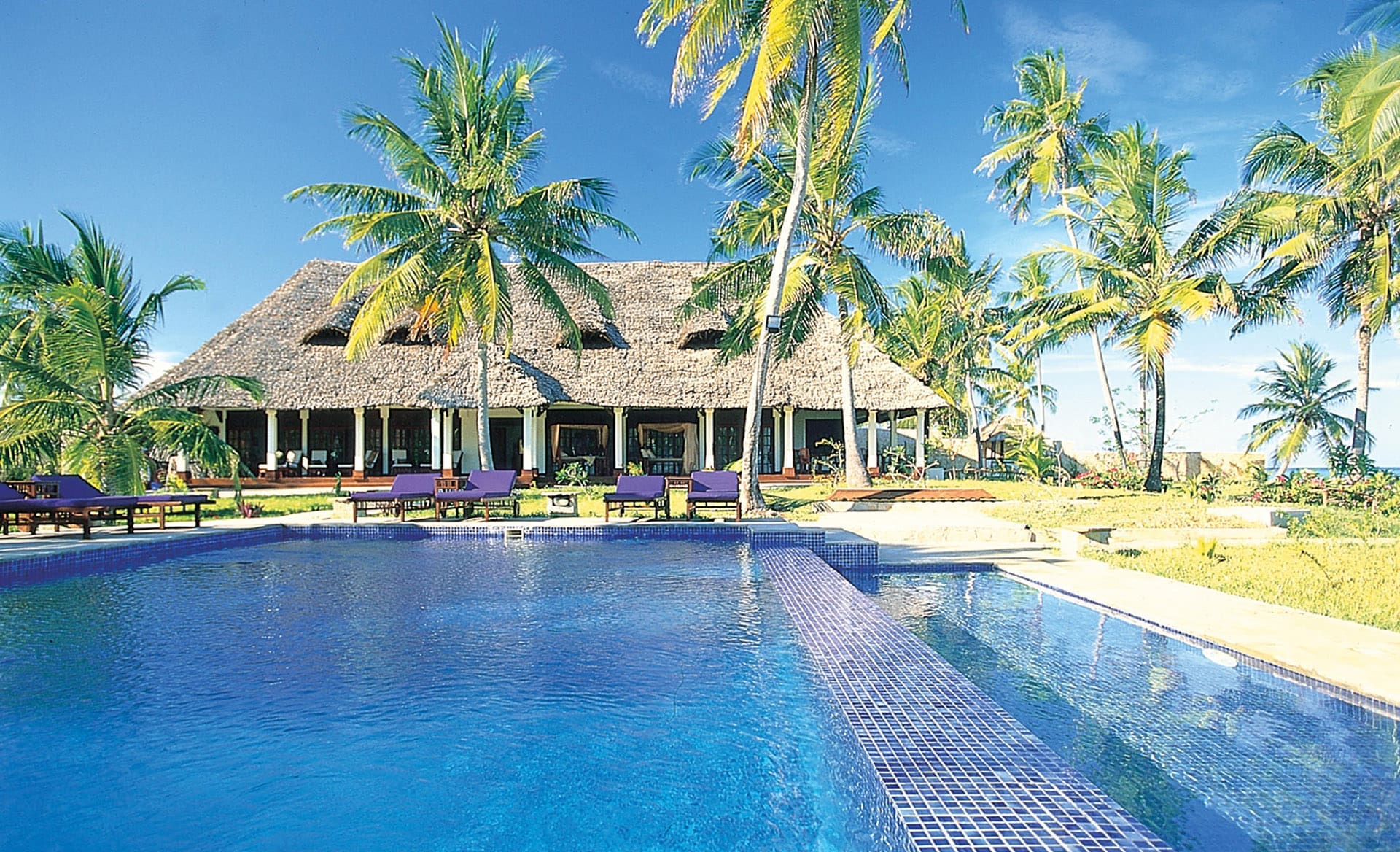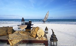 The Palms is a family owned luxury resort that provides personal service and a range of beautifully appointed facilities reflecting the warmth and character of the local architecture in an elegant yet relaxed setting. The Palms is located along a pristine white beach on the east coast of Zanzibar and consists of six luxurious villas. Each of the large villas features a bedroom, living room, en suite bathroom, Jacuzzi and private terrace overlooking the Indian Ocean. There is a swimming pool, dining room, evening bar and pool bar and massage facilities.