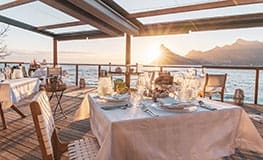 Dining at Tintswalo Atlantic is a special treat with the open-plan kitchen allowing guests to interact with the chef while enjoying a glass of wine. Meals are served in the dining room, on the deck or in the privacy of your suite. Order off the extensive menu or have the chef customize your dinner. Relax on the sun terrace and pool or have a drink in the lounge and bar, all with views of the sea and mountains.