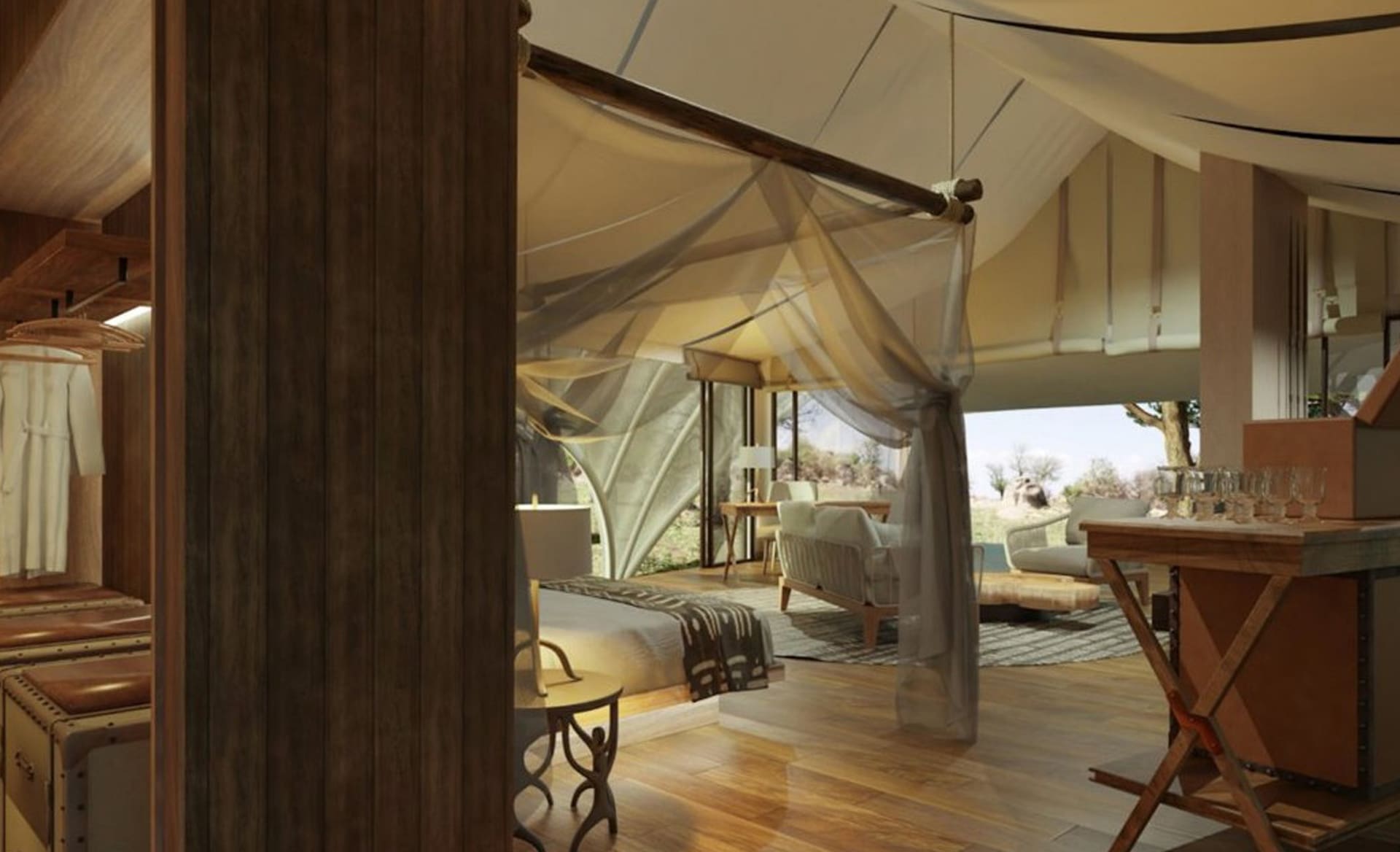 Warangi Ridge Serengeti is nestled against granite ridges in the heart of the Central Serengeti and consists of 20 luxury ensuite tents with an indoor freestanding bathtub and outdoor shower. Design inspired by the pangolin found in the area, each tent has a fireplace, private deck and plunge pool all with breathtaking views of the surrounding Serengeti plains. The main area consists of a library lounge, bar and restaurant leading to the covered main deck cantilevered over a rocky edge overlooking the plains. There are several smaller, more private decks for guests to relax on as well as a main swimming pool which guests can access via stairs from the central areas or through pathways leading from the tents. Activities include morning and afternoon game drives and guests have access to the camp gym or choose to relax between activities at the spa (additional costs apply).