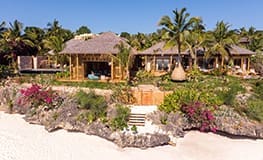 Zuri Zanzibar is located on a white sand beach on the northwest shores of Zanzibar. The resort features 55 bungalows, suites and villas, the majority with Indian Ocean views, each decorated with local furniture and African artwork, canopied beds, dual vanities, enclosed toilet and shower and expansive indoor-outdoor living area. ‘Zuri’ means ‘beautiful’ in Swahili and guests will experience that the moment they arrive. The white sand beach is dotted with palm trees and swimmable year-round, not dependent on low-tide (as many resort beaches are). Enjoy dining on a fusion of European, African and Indian cuisine, served on the beach, at the pool, one of Zuri Zanzibar’s beach front restaurants or in your own room. There is a water sports center, infinity pool, diving center, spice garden and library.