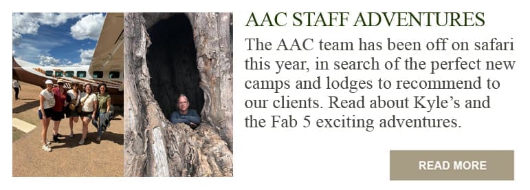 Our sales consultants have been busy: Kyle and the Fab 5 recently returned from their travels in East Africa. By having our team on the ground we are able to discover new camps and lodges, revisit tried and true, and continue to empower local communities. Read their AAC TRAVEL BLOG posts.