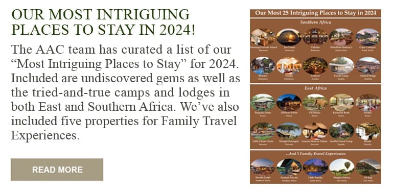 Alison has curated a list of Our Most Intriguing Places to Stay in 2024. There are a few with understated elegance and artful décor; those with a balance to sustainable values and where luxury matters; and those who desire reconnecting with nature and traditional cultures one camp and one community at a time. Each of them are intimate and perfect for our AAC safariers looking for that special experience!