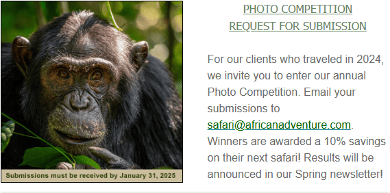 We look forward to hearing from you in 2025 and planning the right wildlife experience with our personal touches on your African Adventure!