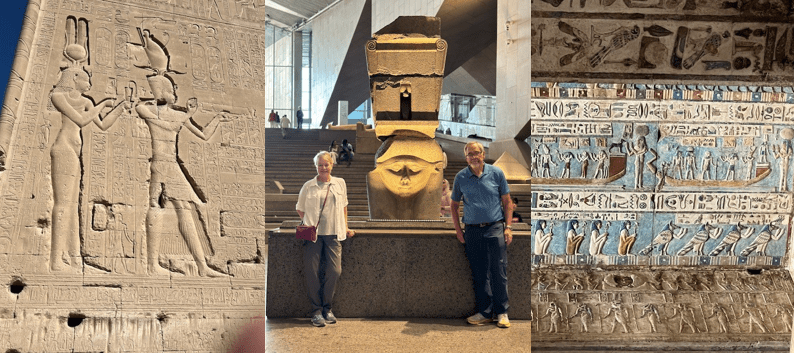 Our guide until Friday night the 22nd, Ola El Mahdy, was also exceptional. She was knowledgeable, friendly, fun, and knew and helped us so much. Having a Master’s in Egyptology, she was very informational. I would HIGHLY recommend her to continue with AAC. The guide Ahmad arranged for us on Saturday, 11/23 to go to the Grand Egyptian Museum (a last minute plan) was Heba Amer, who has a PhD in Egyptology, and was warm, friendly, and of course VERY knowledgeable with Egyptian facts. She introduced us to a new favorite food at the GEM cafe, and during the half day we spent with her, we were impressed, and would HIGHLY recommend her as well as working with AAC in a guiding capacity!