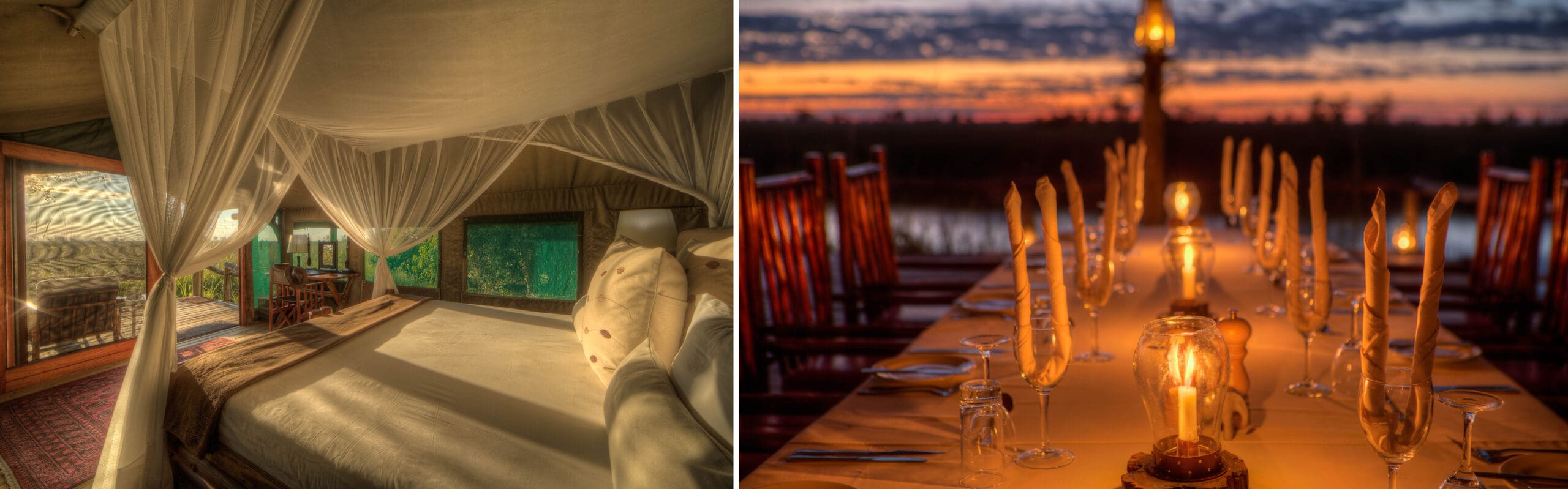 Just wanted to let you know that Scott and I had an amazing time on our trip to Africa! Everything went perfectly, no problems with anything. The 3 lodges (Notten’s Bush Camp, Muchenje and Camp Xakanaxa) were just awesome and so were all the staff and our game drive guides. We were able to see not just the Big 5 but the Magnificent 7 as well. We also want to say a big Thank You for the candlelight, champagne dinner by the lagoon at Camp Xakanaxa. Absolutely wonderful! I took 2000 pics and I’m not sure how many Scott took but we won’t be forgetting this trip at all. Thanks again for making this trip of a lifetime the most spectacular trip ever!! We are definitely telling all our friends. Thanks again for everything!!