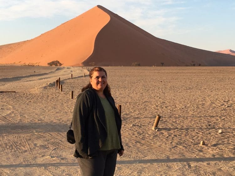 Everything you have very imagined about a desert becomes a reality at Sossusvlei. Huge big red dunes, surrounded by seas of sand. Although my time here was short – we packed a huge amount into it: we set out very early in the morning, we drove to Dune 45 (behind me in the photo below), did the dune climb, continued past Big Daddy and onto Dead Vlei. Definitely a must see!