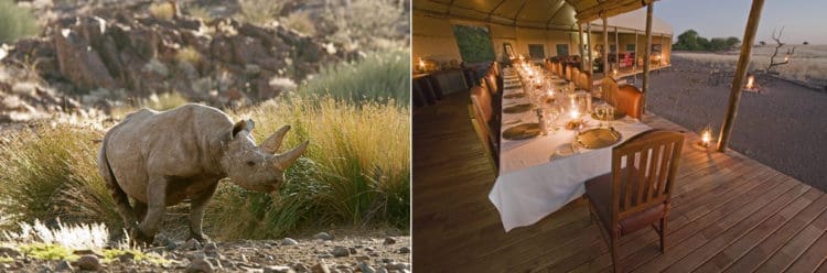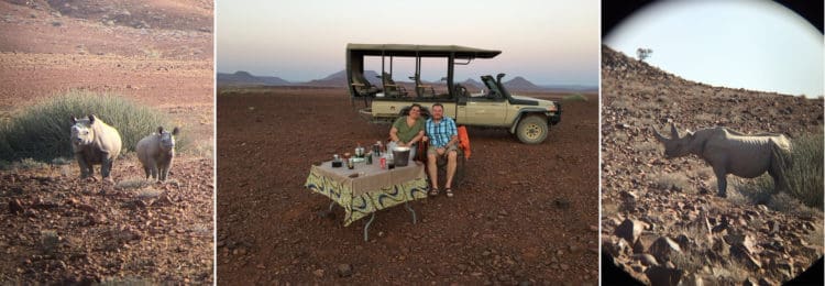 Desert Rhino Camp is gorgeous. This is definitely a place where the landscape comes first and wildlife second. In saying that the landscape leaves u breathless and humbled. So much in one place! The little green valleys with the natural springs and the vast open and seemingly barren places. Such an anomaly. The most beautiful night skies I have ever seen! We rhino trekked and explored as far as we could with a picnic lunch and tomorrow we will trek again. Great guide – Bons is his name. It has been a true adventure – both in body and in mind!
