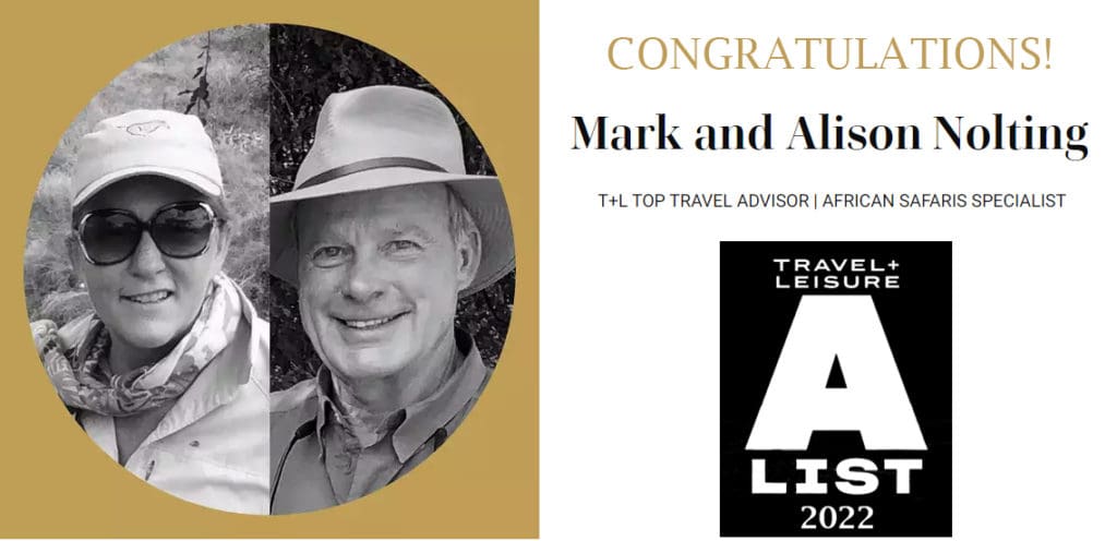 We are so honored to both be recognized by Travel+Leisure as Top Travel Specialists for Africa. We believe this reflects the incredible work of the entire travel design team at the Africa Adventure Company!
