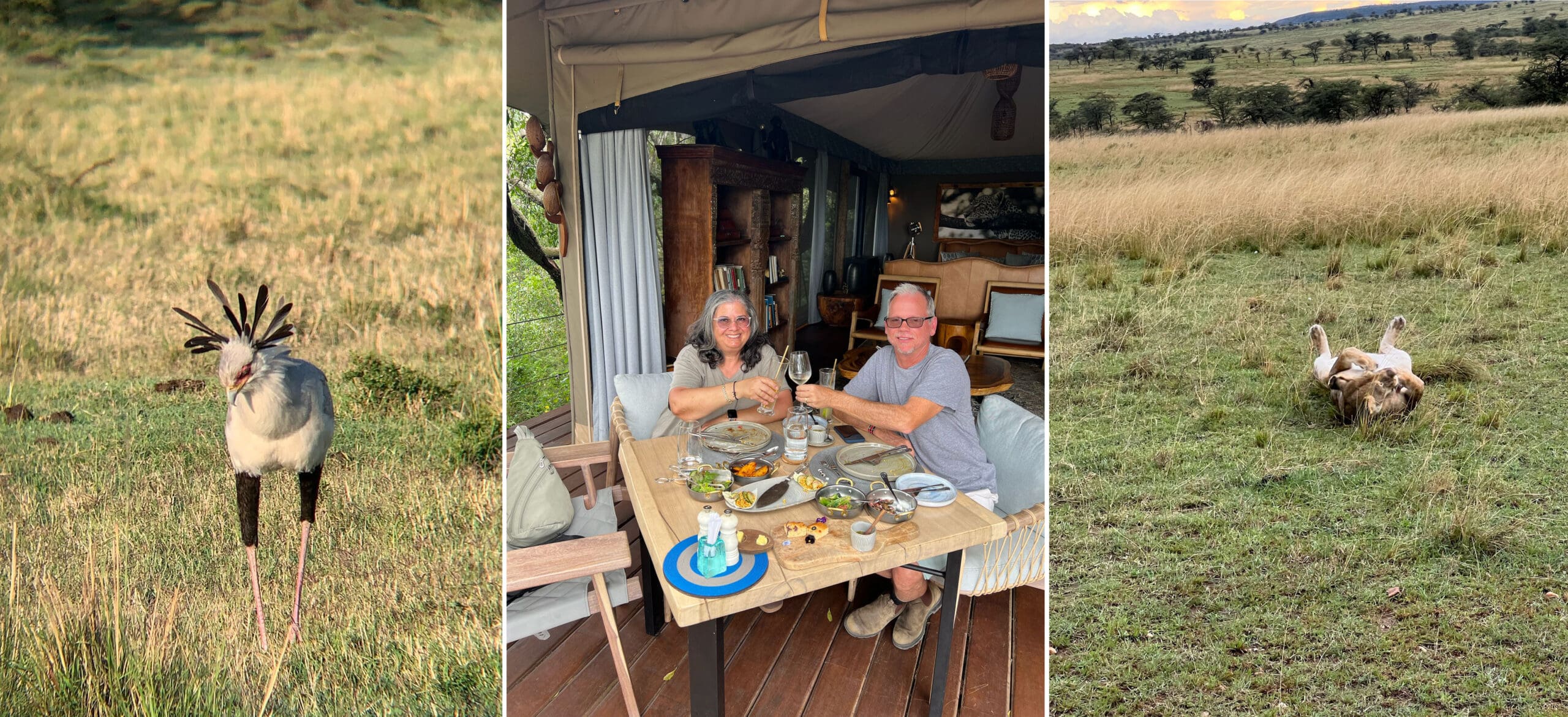 Next we visited Mara Nyika – here we got a lovely afternoon thundershower which cleared the air and our afternoon game drive was prolific. Everything you could possibly want to see and more. One of my favorite sightings was a pair of secretary birds (birds have grown into a passion for me) and these incredible birds were so fun to watch. While at dinner that evening the lions roared so loud, we could feel the vibrations – dinner and a symphony!
