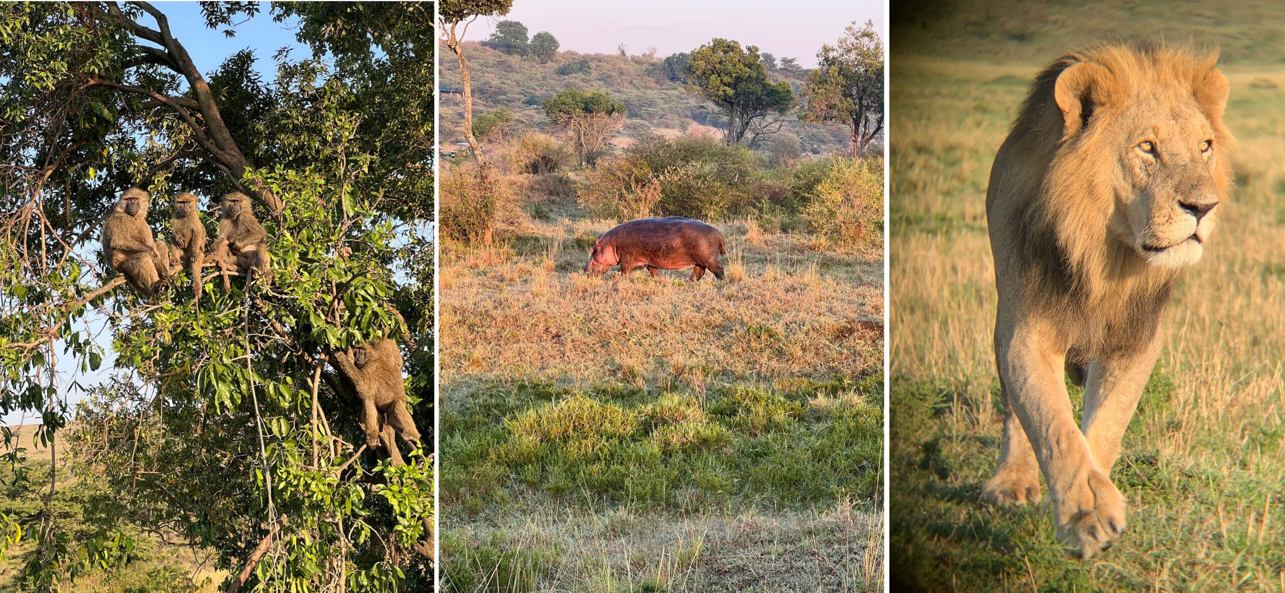 Last but definitely not least was Mara Toto. This incredible small camp (four rooms) is built in the trees on the banks of a river. Here we had a different serenade at night – it was all hippos and the baboons jumping on top of the tent to roost in the trees! Incredible food and the rooms are very different to other Great Plains properties we visited. We chose to do all our game drives in the National Park (even though Toto does offer conservancy viewing), just so we could compare. The Mara does not disappoint and even though it rained one afternoon we put on rain ponchos and had an incredible afternoon game viewing.