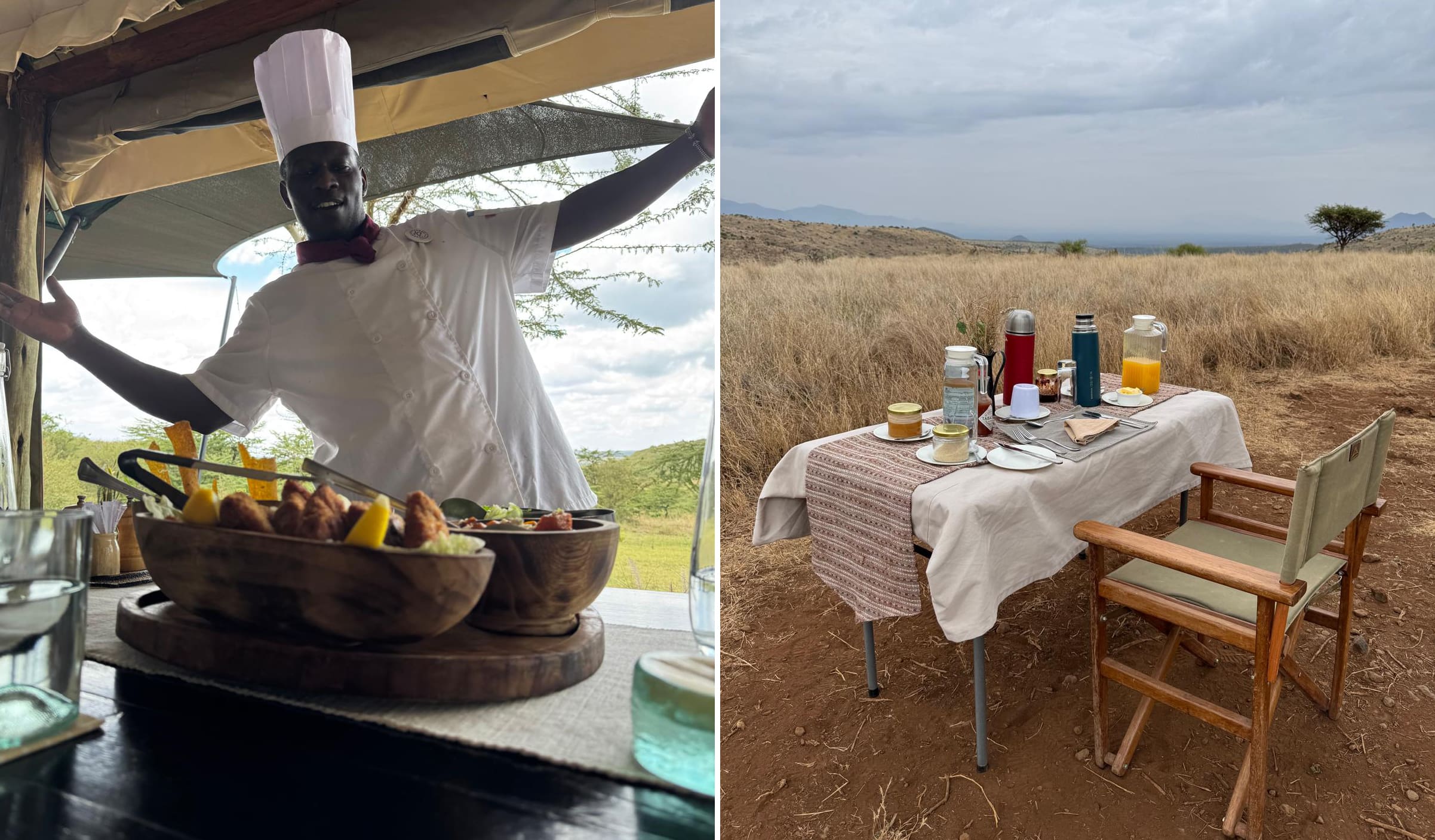 We started at Ol Donyo in the Chyulu Hills (most beautiful expansive views from the decks we had baboons and some naughty vervets trying to get into our rooms!). The hide was incredible and if you are patient and wait all the wildlife will come to you (three huge bull elephants made this incredibly special). The staff was excellent and our server, John the legend, was remarkable. He is the longest staff member at Ol Donyo!