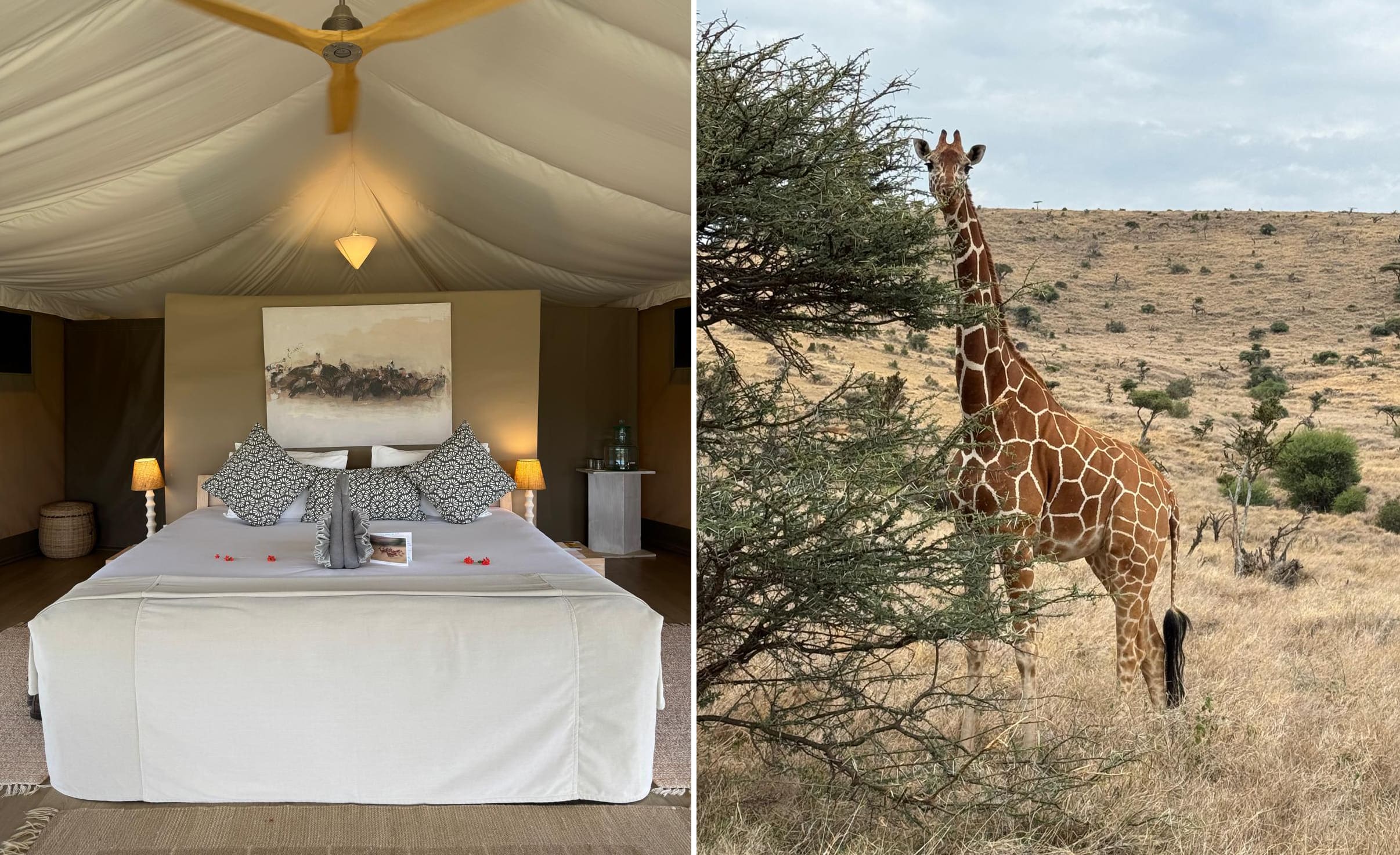 Our next stop was Lewa – I stayed at Sirikoi and Kyle stayed at Lewa House. We were both amazed at the game viewing and the accommodations (I stayed in the two-bedroom cottage – lap of luxury). We saw the unusual gerenuk, ostrich, lions, elephants, and so much more (this is a great place to see rhino). We also visited the Lewa HQ to learn about the incredible conservation work they are doing and how they are taking care of the conservancy and all the wildlife. Definitely a highlight. Sirikoi is farm to table, and I had an incredible back of house tour to see where all the magic happens in the gardens – best vegetables ever and even the flowers in the rooms are grown in the gardens.