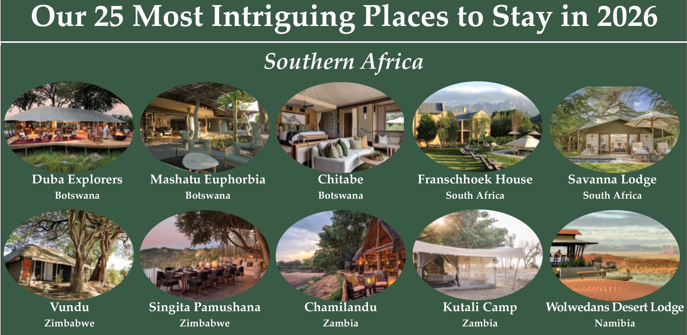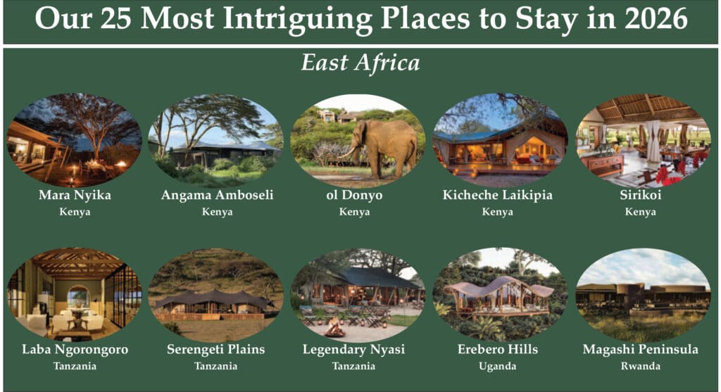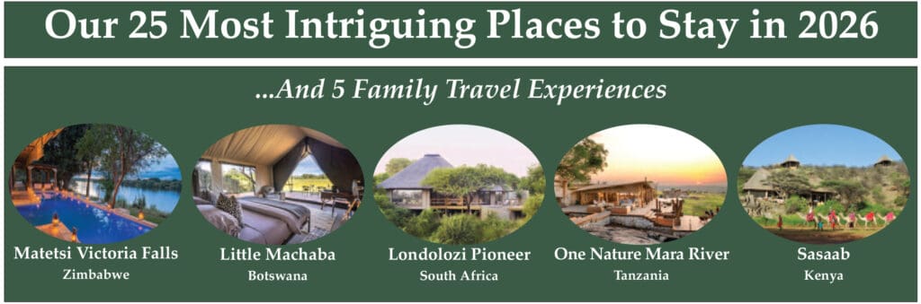 What’s the next undiscovered gem or a tried-and-true camp to include on your upcoming safari? Check out our team’s top camps, lodges and hotels for 2026! Be sure to check out the accommodation’s “featured itineraries” as well.