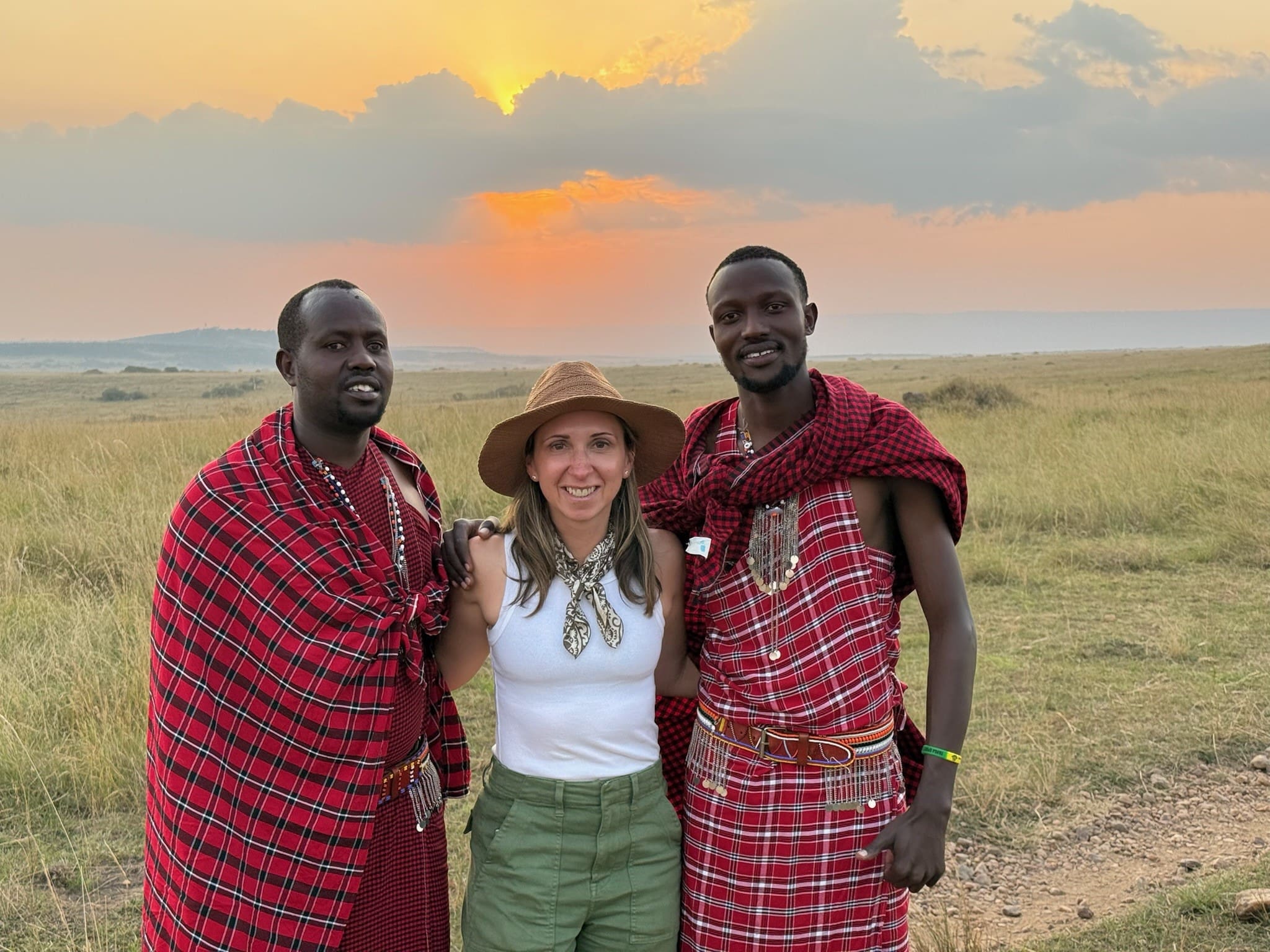 Second Place – Clients on Safari – Nicole Kuritsky, in the Maasai Mara National Reserve, posing for pictures at the moment one of her guides heard the sound of a distant and elusive lion. They immediately jumped into a nearby jeep and drove to photograph up close a pride of lions. (Photo taken by Alan Kuritsky).