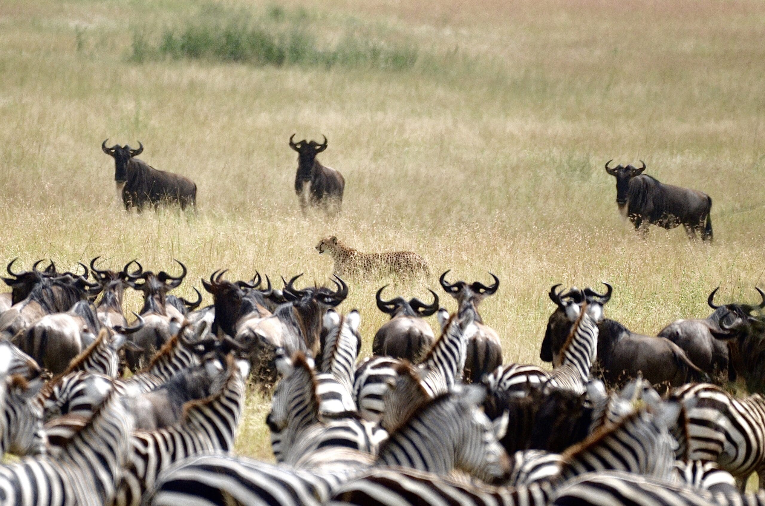 Third Place Tie – Scenery: Fran Castro – After the rains, a cheetah scans zebras and wildebeest on the Serengeti plains, calm before the chase.