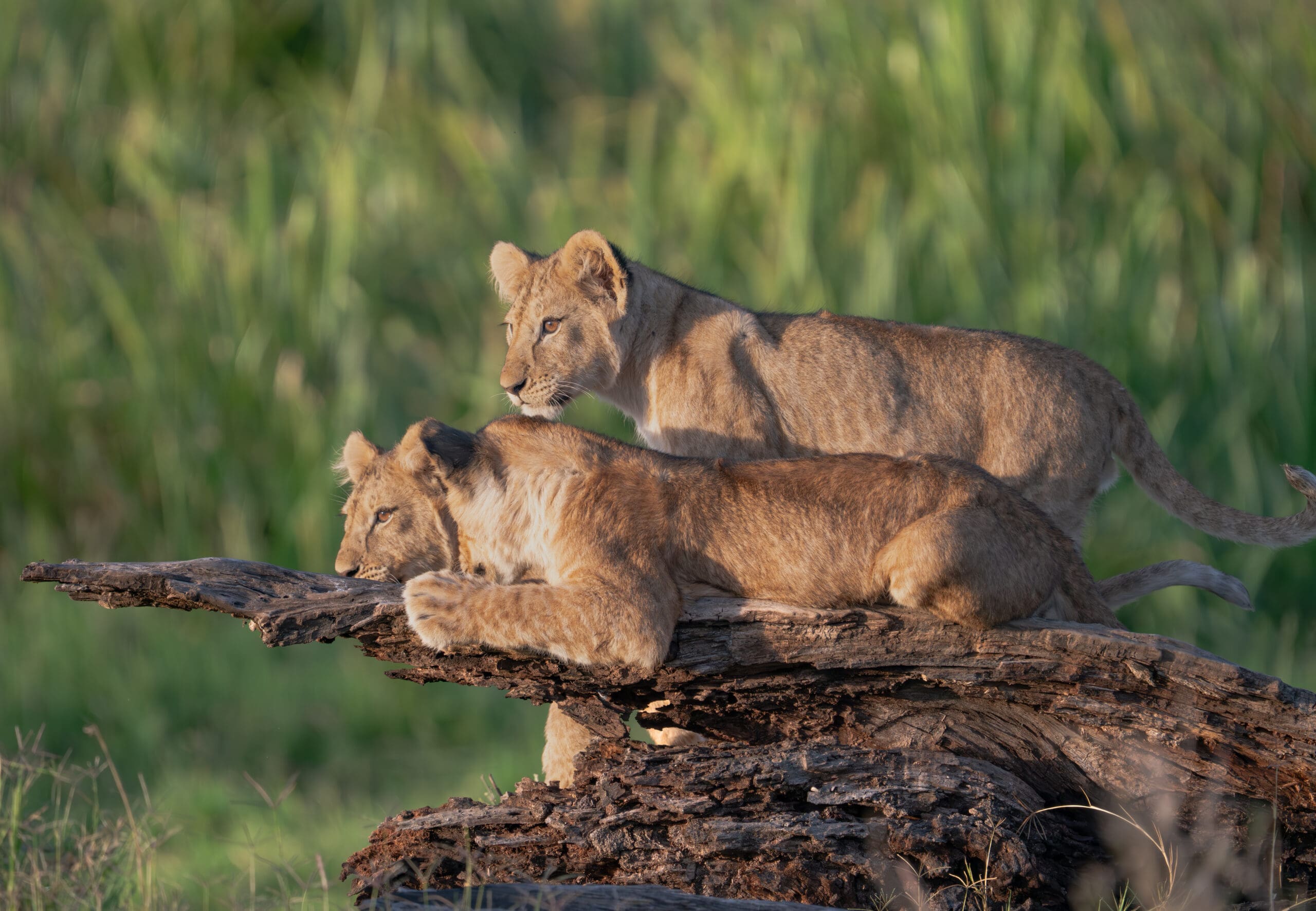 Third Place Tie Babies: Bill Goza – Two lion cubs staring intently at something in the grass below. Young lions in most prides engage in playful behaviors that are crucial for development. They often stalk, pounce, chase, and wrestle with siblings or other cubs. Lewa Conservancy, Kenya.