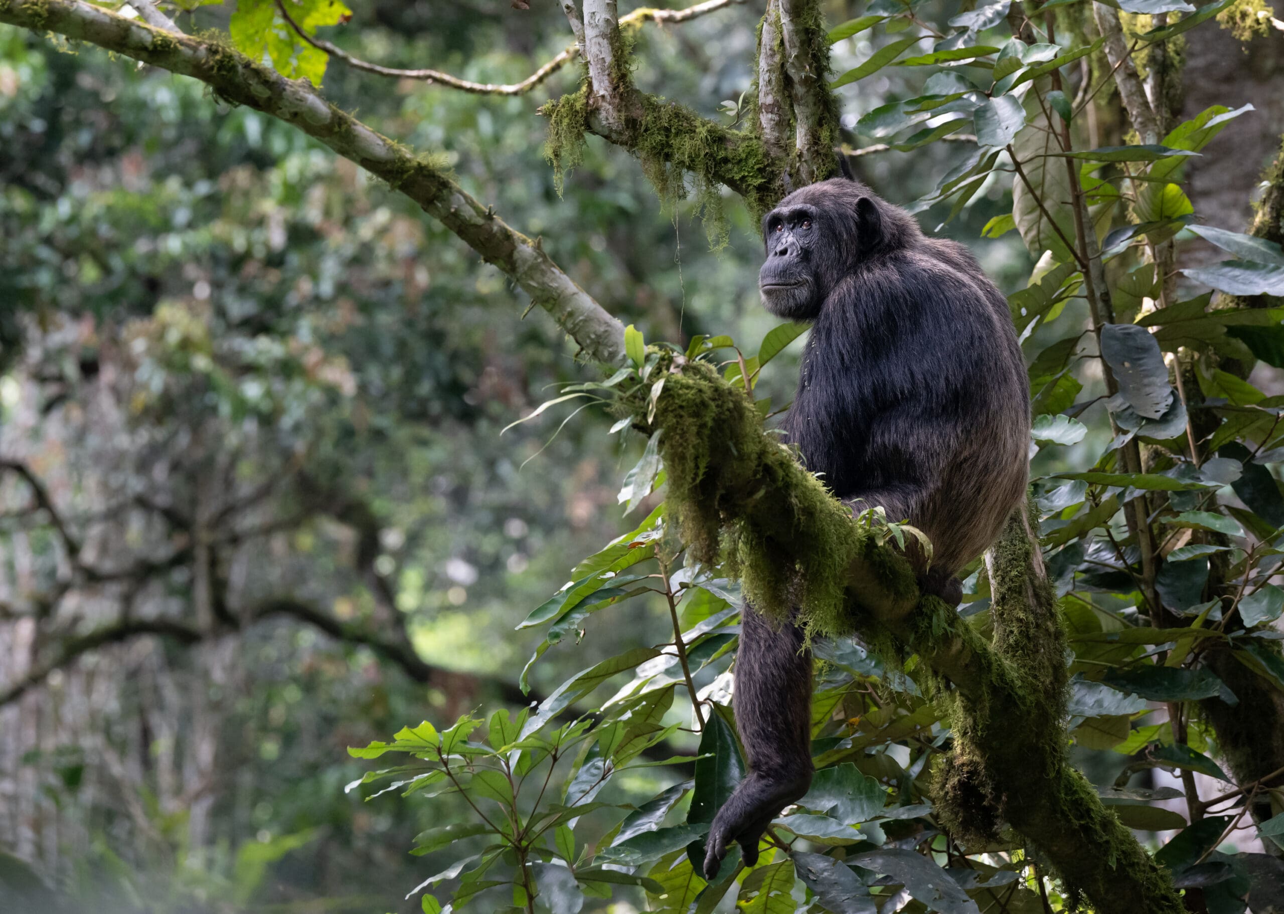 Third Place Tie Wildlife: Bob Natalini – Pensive in the most natural way. Chimps build new, sophisticated sleeping nests in trees every single night, weaving branches together for comfort, safety, and to avoid insects. Kibale National Park, Uganda.