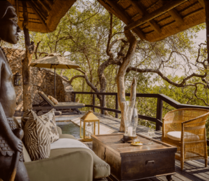 Singita Ebony Lodge stands steadfast amongst enormous trees on the banks of the Sand River in the heart of South Africa’s ‘big cat country.’ Guests are immersed in nature with huge open spaces and interiors inspired by a combination of local tribal culture and the animal kingdom.