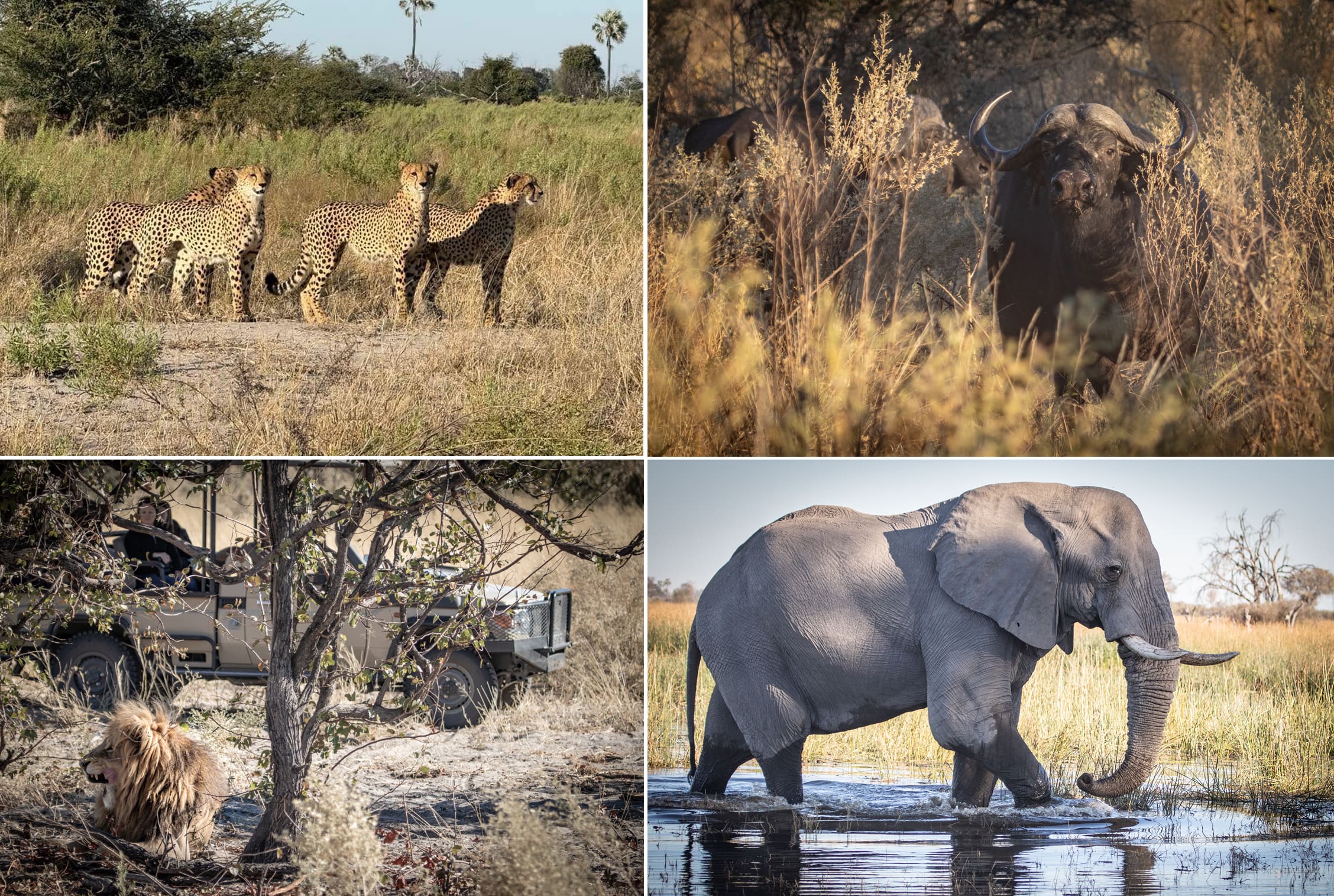 We also encountered eight lions including four cubs, large herds of buffalo and elephants, and hippos wallowing in the waterways.