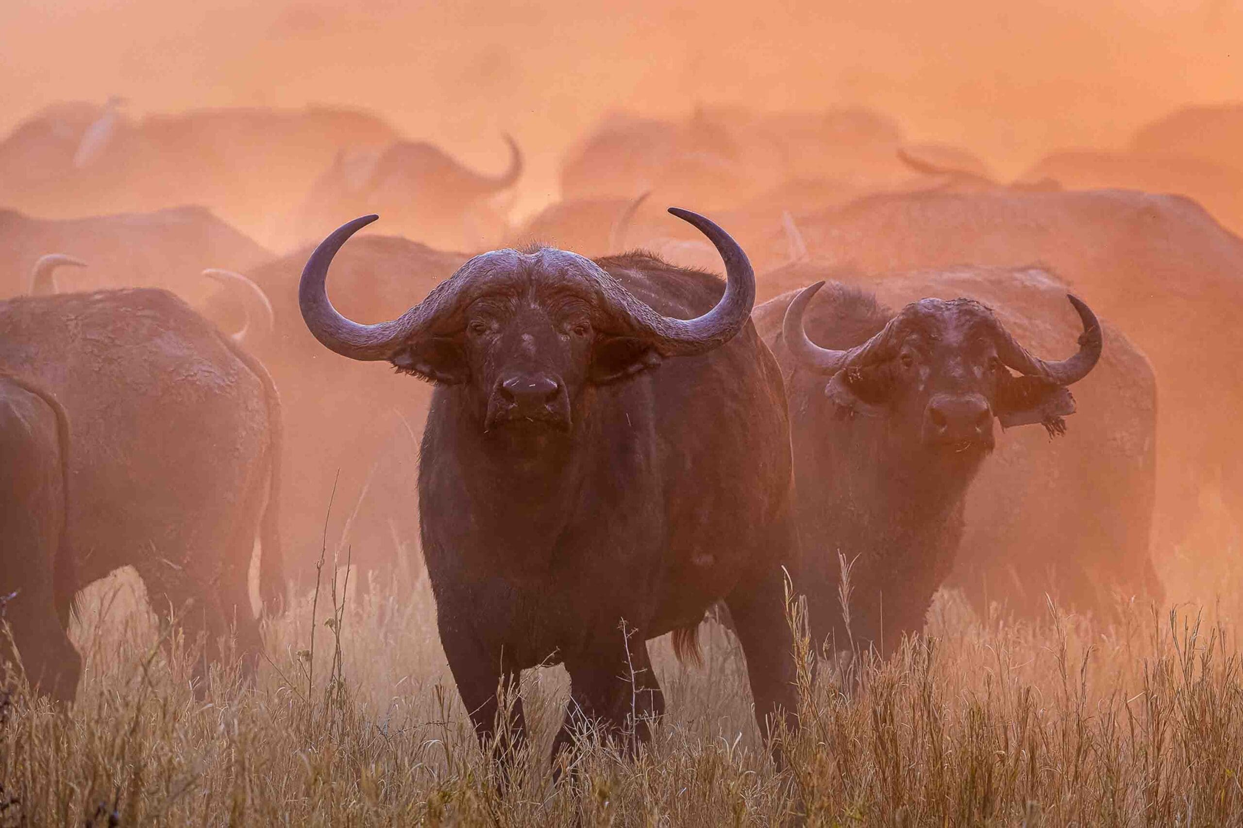 Our days began with early starts while it was still dark, venturing out before sunrise to maximise our chances of seeing what the lions were up to. We would always start by scanning the horizon for buffalo. Any guide will tell you that if you want to find lion, you just need to follow the ‘buff’. Mokete has a herd of buffalo that’s highly likely the largest in Africa. Gathering from May every year, the buffalo come from miles around. Splinter herds join together and before you know it, numbers swell to well over 5,000 individuals. It’s an awesome sight. Kicking up clouds of dust this mass of muscle moves across the sun-drenched plains. They’re often trailed by Mokete’s lions. Make no mistake, this seemingly quiet, open plain is a battleground.
