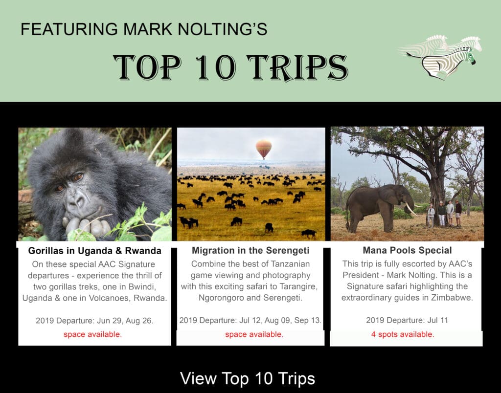 It was a pleasure meeting many of you at our Safari Soirées last spring. For 2019, we are hosting one spectacular event in Fort Lauderdale on March 6th. We share your passion for Africa, her people and her wildlife, and continue to strive to give you amazing experiences you will never forget. I encourage you to read our Staff Adventures which inspire new AAC safari offerings in 2019.